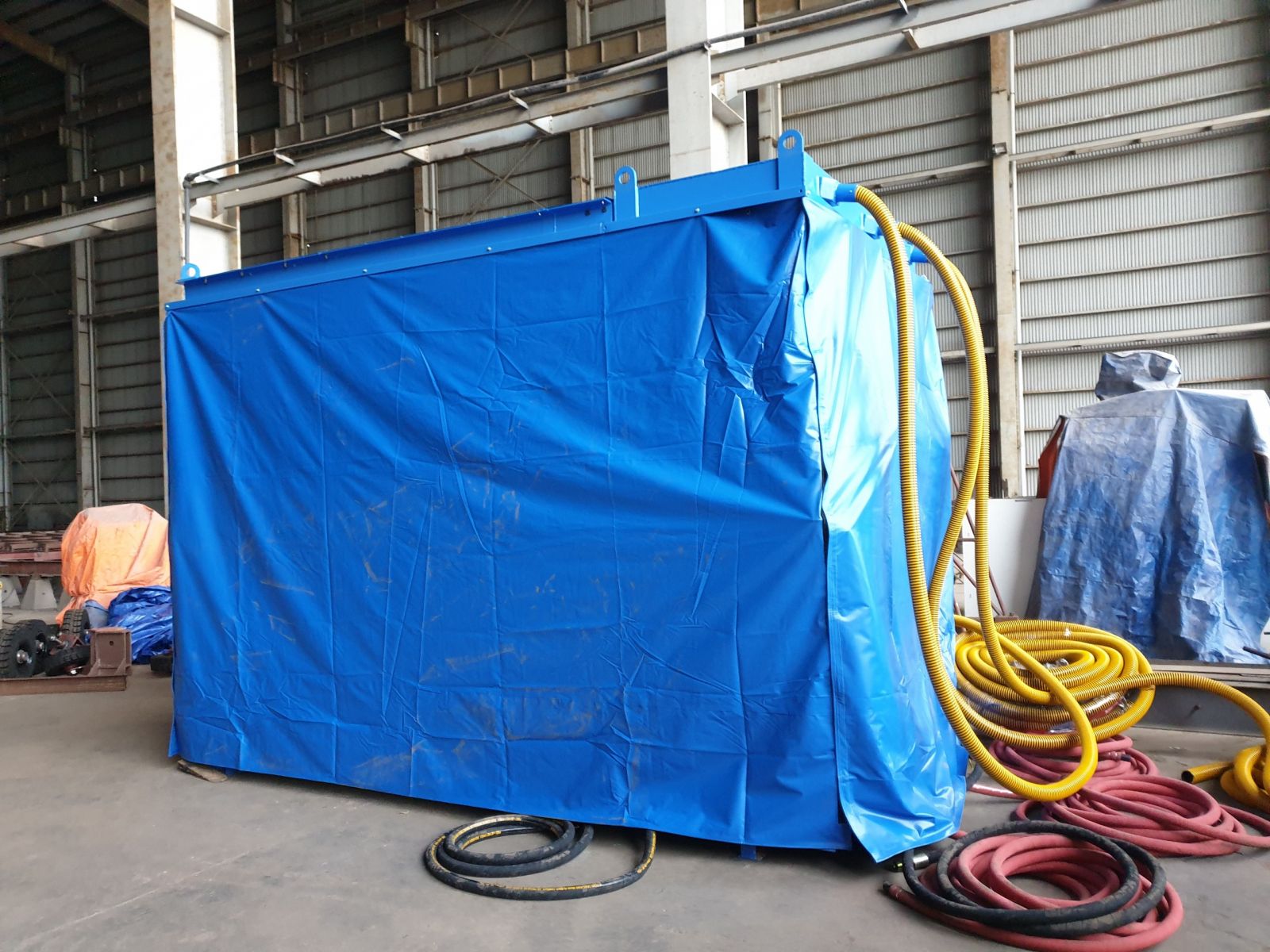 - Dây chuyền máy bắn bi được thiết kế theo từng module, dễ dàng di chuyển và làm việc được trong các điều kiện khoang, két, trong hầm hàng, ngoài bãi và trong nhà xưởng đóng mới.