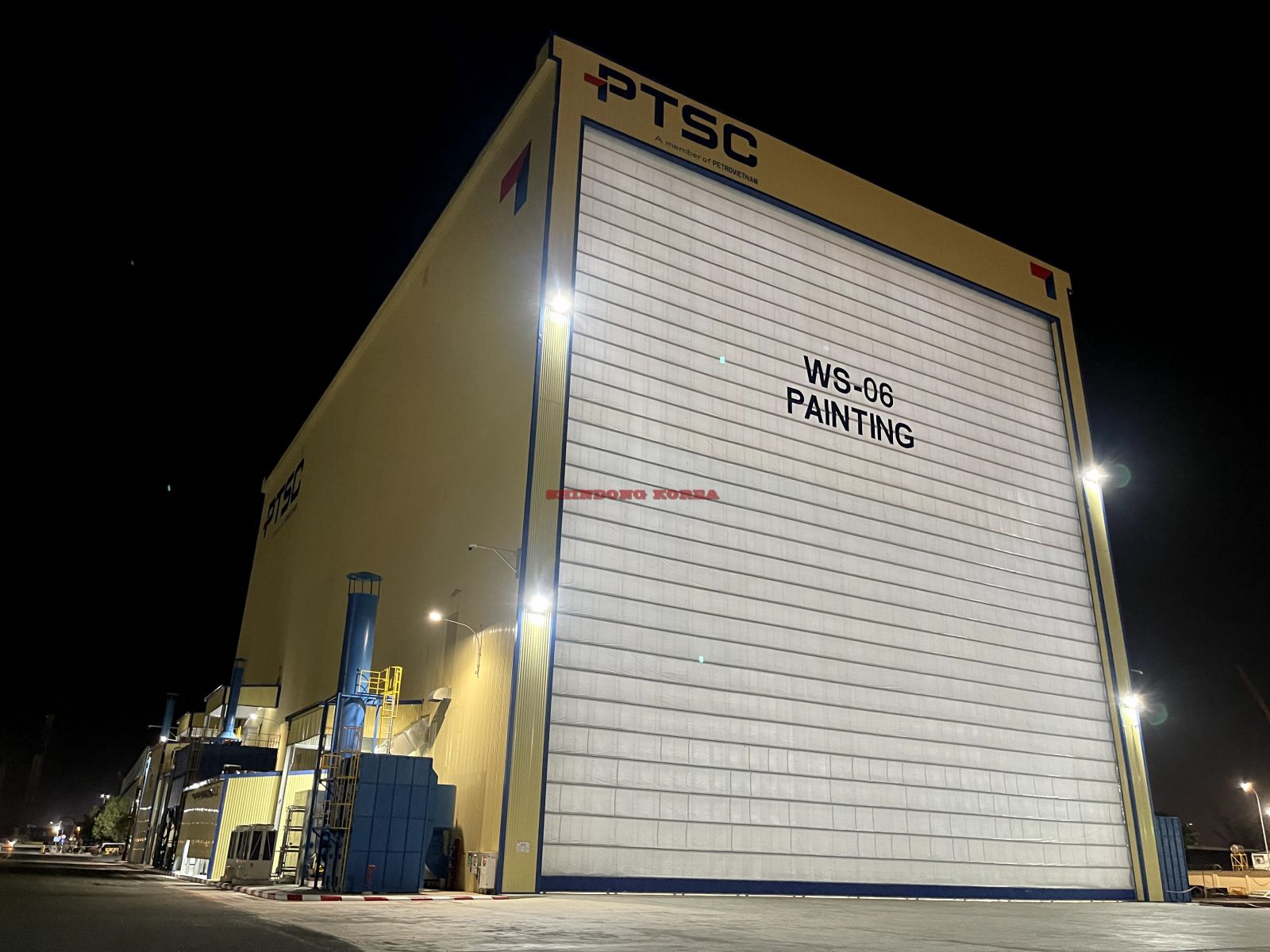 Sản phẩm Cửa Mega Door xưởng Sơn- Xưởng Phun bi kích thước 28m x 18m và 40m x 40m cho chủ đầu tư PTSC
