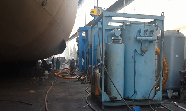 Dây chuyền phun bi di động sữa chữa tàu là dây chuyền công nghệ phun bi thép di động, đồngbộ tất cả các khâu từ phun bi đến thu hồi, làm sạch, sấy khô tái sử dụng tuần hoàn bi khép kín(tuổi thọ bi có thể lên 2000 lần phun).
